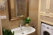 Duża łazienka (6 m2) z wanną i prysznicem, pralką w zabudowie i wieloma szafkami do przechowywania. Osobna toaleta, również z szafkami wykonanymi na wymiar. Przy wejściu wygodna garderoba. Duży przedpokój daje możliwość dodatkowej zabudowy szafą ubraniową. Piękny dębowy parkiet doskonale utrzymany. Drewniane brązowe drzwi, granitowe parapety, wysokiej jakości okna zapewniające szczelność i ciszę. Sprzęt AGD firm Siemens, Bosch, armatura Grohe, wyposażenie wysokiej jakości, które daje pewność działania przez lata.
