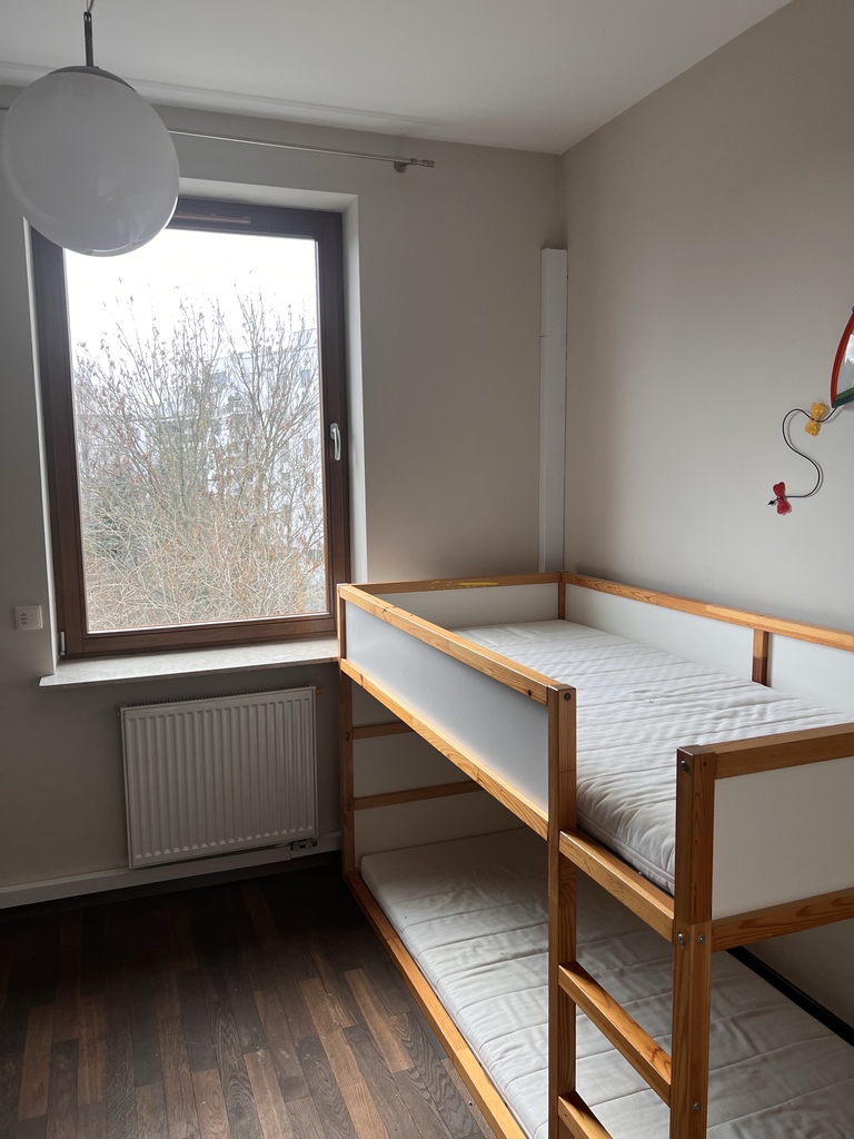 Dwie sypialnie dziecięce, łazienka z wanną. Przy wejściu wygodna szafa i dużo miejsca na przywitanie gości.