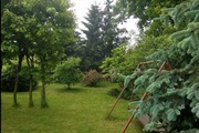 Działka pięknie utrzymana, z dużymi nasadzeniami, ogrodzona, z miejscem do odpoczynku oraz utwardzonym podjazdem do parkowania aut przed budynkiem gospodarczym.