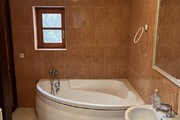 W domu na parterze duży, wysoki na 5 metrów pokój kominkowy z wyjściem na taras i do ogrodu, pokój biurowy, łazienka z prysznicem, garaż i kotłownia.