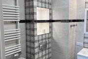 Łazienka z wanną i pralką.