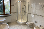 Część dzienna to pięknie doświetlony i skierowany na południe, z balkonem z widokiem na zieleń, ogromny salon z częścią wypoczynkową z kominkiem oraz jadalnią w pobliżu częściowo otwartej na salon kuchni. Duża kuchnia, z oknem z widokiem na zieleń ze stołem śniadaniowym będzie wygodnym miejscem na poranne rozmowy.  Reprezentacyjny okrągły hall pozwoli elegancko przywitać gości. Jest w nim garderoba, toaleta dla gości oraz pralnia. Część prywatna to sypialnia główna z pokojem kąpielowym z wanną i prysznicem. Okna skierowane na wschód, na spokojną, zieloną okolicę ułatwi poranne wstawanie. Dwie mniejsze sypialnie posiadają własną łazienkę z prysznicem, zatem nie będzie powodów do porannych sprzeczek.