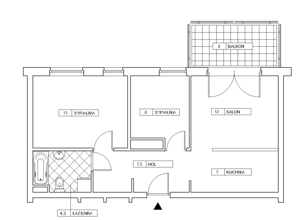– salonu 12 m2 wraz z  aneksem kuchennym 7 m2