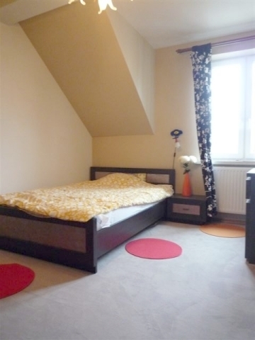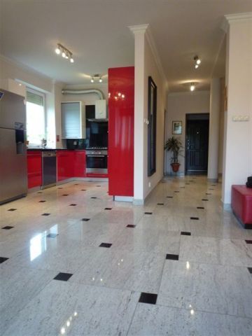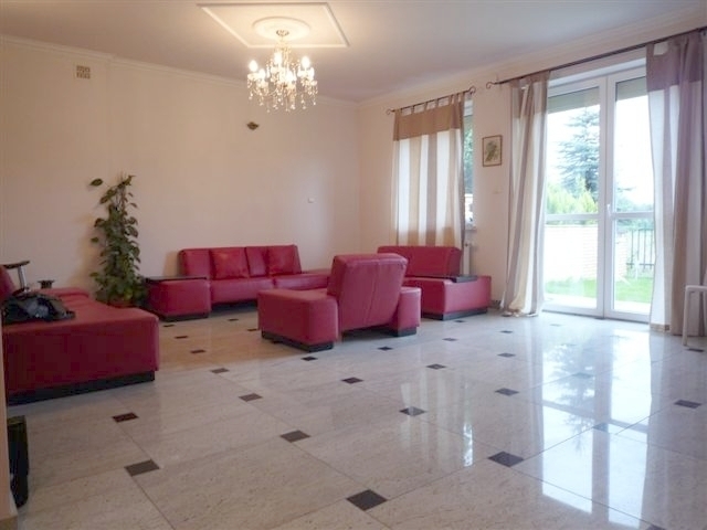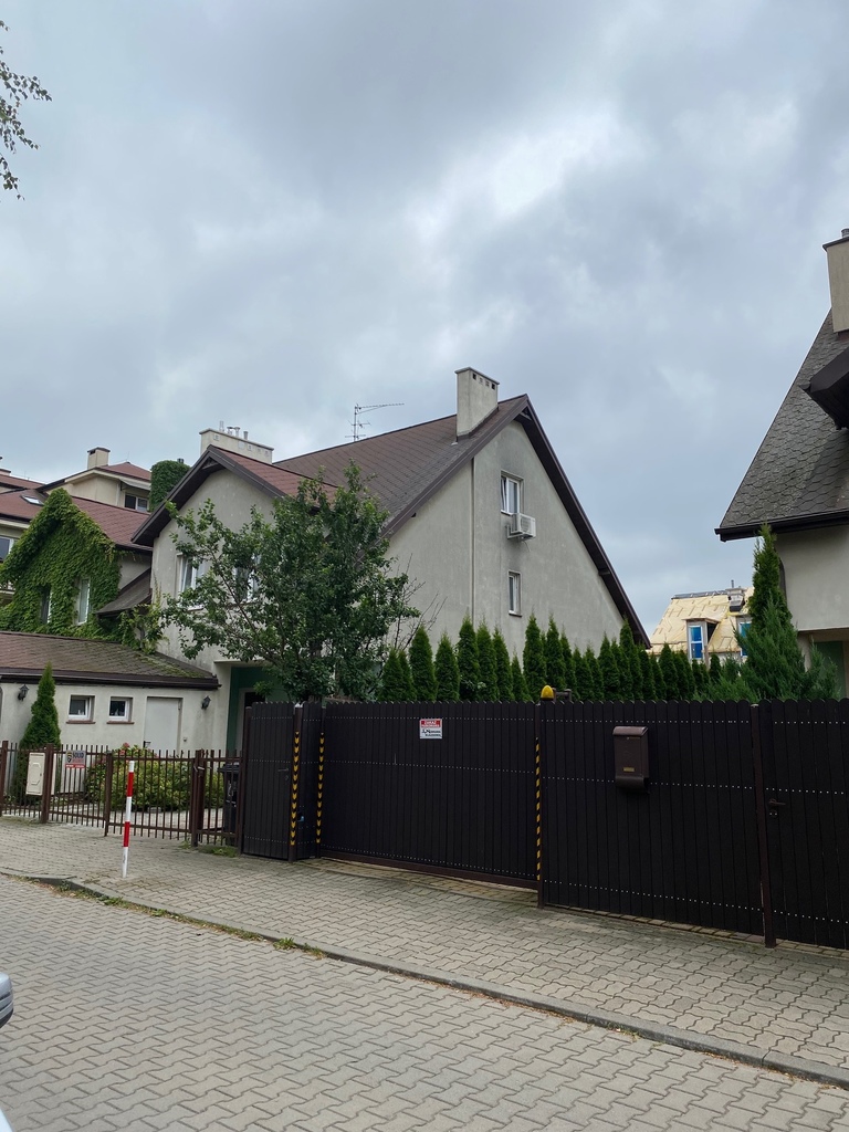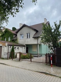 Dom – połówka bliżniaka na zamkniętym osiedlu, urządzony w wysokim standardzie, z obowiązującą umową najmu dlugoterminowego. Dom wybudowany w 2007 r., urządzony z użyciem trwałych materiałów – granitowe podłogi, łazienki wyłożone naturalnym kamieniem, również schody, co zapewnia długotrwałe użytkowanie i doskonały efekt. Na parterze duża kuchnia, salon i łazienka oraz dwa pokoje na gabinet lub sypialnię, na pietrze cztery sypialnie i dwie łazienki, co zapewni komfort wszystkim użytkownikom. Na poddaszu pokój z łazienką i garderobą z oknem, skośne ściany sufitowe, klimatyzacja. Garaż wolnostojący przed budynkiem. Ogródek z trawnikiem oraz roślinnością osłaniającą od sąsiednich domów. Dodatkowe miejsca do parkowania wzdłuż budynku. Dom wynajęty, możliwość zakupu i kontynuacji rentownej umowy najmu.